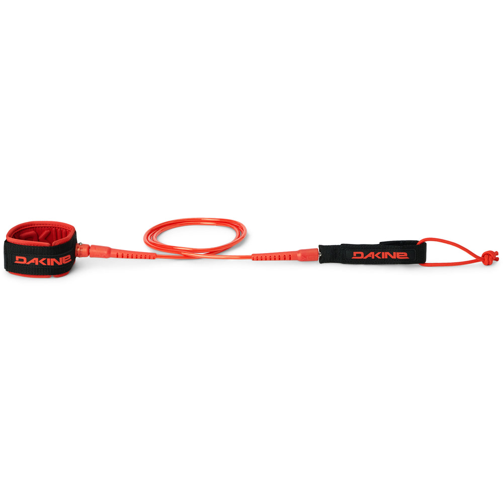 The Procomp surf leash offers the maximum strength possible with minimal resistance for up to shoulder high surf. This everyday leash will keep your board safely attached with the least drag possible thanks to the strong 3/16-inch urethane Dura-Cord. Dakine's longtime history innovating surf leashes is apparent in the use of marine grade stainless steel swivels, a 1.5-inch molded neoprene cuff, and Opti-Flex leash ends which combine for a super efficient, comfortable and durable leash. The Procomp is offered in both 5- and 6-foot lengths.